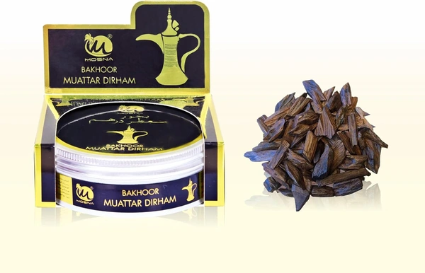 CONTENTS: This includes 1 Pouch of Muattar Bakhoor. The jar contains 40 grams of muattar bakhoor incense. Bakhur MATERIAL: Made from a blend of aromatic wood chips that are infused with a deep oud fragrance bakhoor powder INCENSE: Aromatic wood chips are carefully selected. A deep oud blend creates a luxurious and calming atmosphere and is sourced from sustainable forests. incense powder