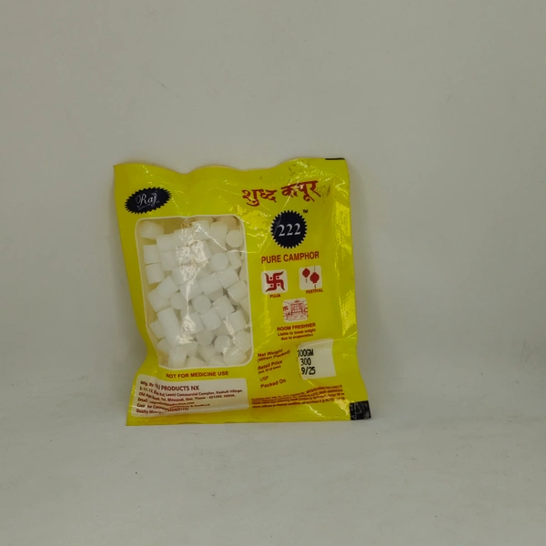 Transform your quick morning prayers into moments of profound clarity with Raj 222 Camphor Small Tablets. These perfectly sized kapoor pellets ignite instantly, delivering a burst of refreshing, authentic fragrance without any harmful residue. Crafted for maximum purity, they offer a brilliant, smokeless flame that beautifully illuminates your home altar while actively purifying the surrounding air. You deserve a peaceful, soot-free environment for your daily spiritual practices. The convenient 100g pack ensures you always have the right amount of religious camphor for brief ceremonies, meditation, or subtle aromatherapy. Feel the soothing calm wash over you as the pure essence elevates your mindset and cleanses your living space of negativity. Make every prayer count with the finest quality puja supplies. Secure your pack of small camphor tablets now and experience true spiritual purity.