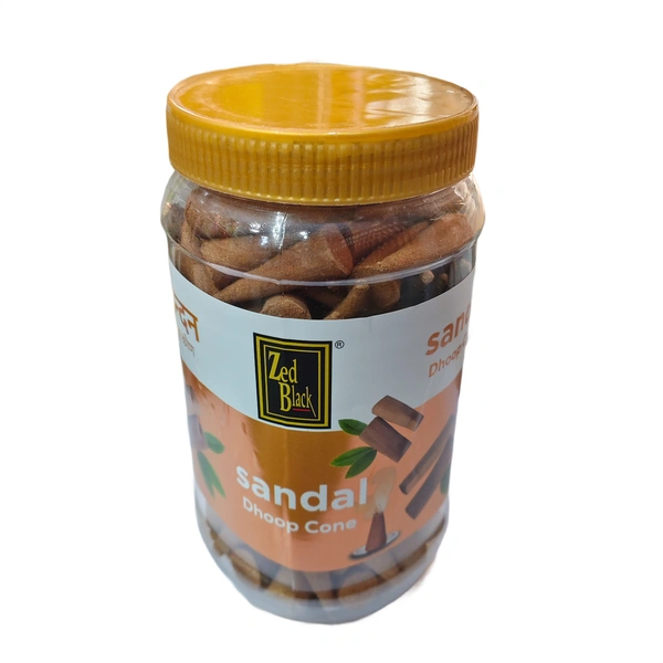 A 400g jar of premium Chandan dhoop cones, providing a long-lasting sandalwood aroma for your spiritual needs.